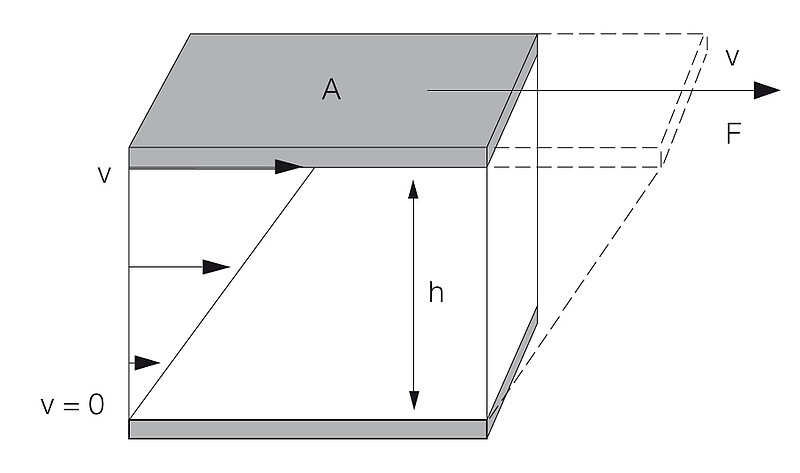 The two-plates model is used to define the rheological parameters needed for a scientific description of flow behavior (Figures 4.1 and 4.2). Shear is applied to a sample sandwiched between the two plates. The lower stationary plate is mounted on a very rigid support, and the upper plate can be moved parallel to the lower plate. Before calculating the viscosity, it is necessary to first define the shear stress and the shear rate.