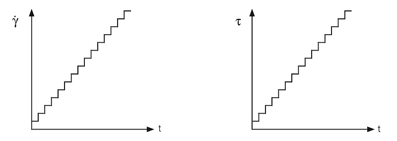 - Preset torque or shear-stress ramp, usually ascending or descending in steps