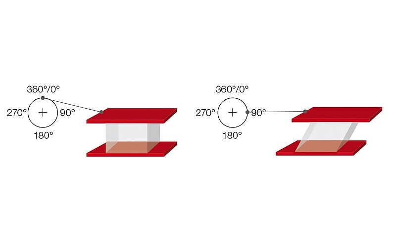 For a completely rigid sample, such as one made of steel or stone with ideally elastic behavior, there is no time lag between the preset and the response sine curve (Figures 9.4 and 9.5). Most samples show viscoelastic behavior. In this case, the sine curves of the preset parameter and the measuring result show a time lag for the response signal. This lag is called the phase shift δ (pronounced: delta, Figures 9.6 and 9.7). It is always between 0° and 90°.