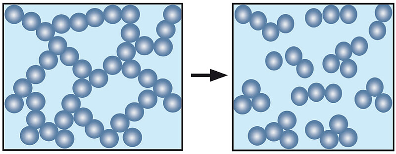 All liquids are composed of molecules; dispersions also contain some significantly larger particles. When put into motion, molecules and particles are forced to slide along each other. They develop a flow resistance caused by internal friction.