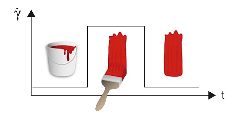 - Interval (2) Strong shear to simulate structural breakdown of the sample during processing at a preset high shear rate, for example when applying paint with a brush or by spraying