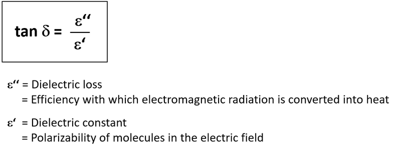 Comme le terme "chauffage diélectrique" le suggère, un matériau doit posséder certaines propriétés diélectriques pour être chauffé efficacement dans le champ micro-ondes. Les caractéristiques de chauffage d'un matériau particulier (par exemple, un solvant) sous des conditions d'irradiation micro-ondes dépendent de la capacité d'une substance spécifique à convertir l'énergie électromagnétique en chaleur. Cette capacité est déterminée par le soi-disant angle de perte, tan δ (Figure 5).